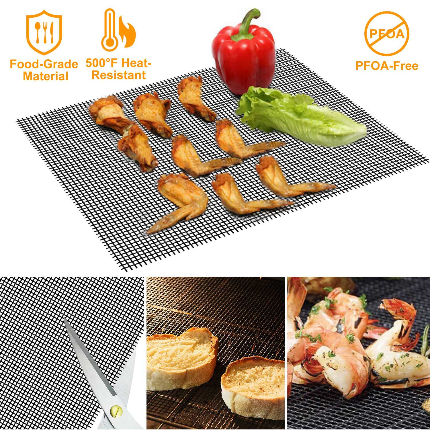 Home > BBQ Grill Mat Non-Stick Mesh Mat Baking Sheet Liner Reusable Reversible Washable for Outdoor Gas Charcoal