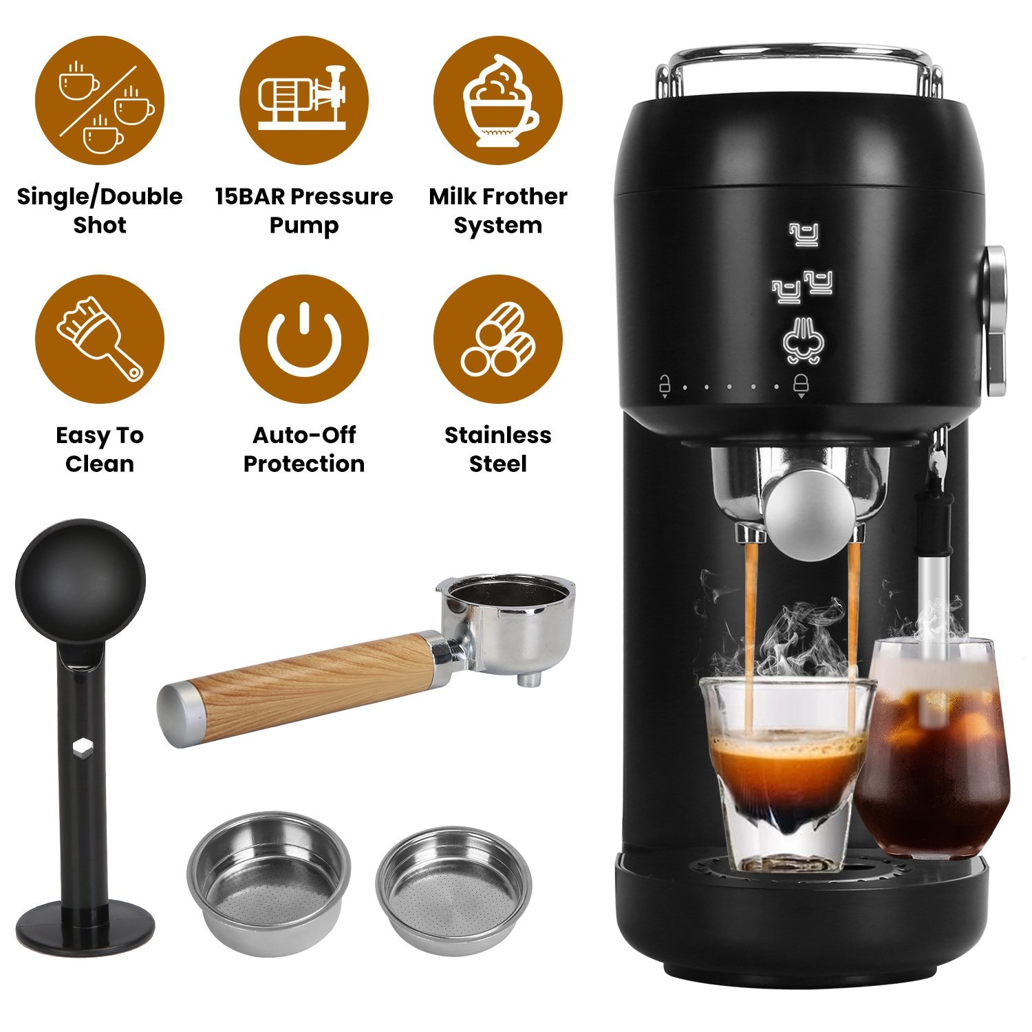Home > Espresso Machine With Adjustable Milk Frother Steam Wand 33.8OZ Removable Water Tank Heating Panel 15BAR Professional Coffee Maker For Espresso Latte